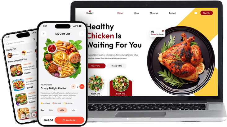 We aim for clean, speedy, and appetizing presentation in our designs. Your website will be a strong sales machine with ready-to-go SEO pages, integrated ordering tools, and table-booking features. Our restaurant web development services will make it possible for customers to easily check out your menu, locate the nearest outlet, and place their orders without any hassle.